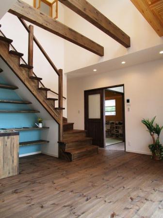 ☆大田原市-T様邸☆ ☆無垢のやさしさに包まれる家☆ ギャラリー 勝手口 玄関収納 見せ梁と吹抜のLDK 階段下の手づくり本棚とカウンター 和室 室内干しのできる2階ホールは大きな窓♪ 洋室は固定階段でロフトへ ロフト ウォークインクローゼットのある寝室 収納力抜群の納戸 小屋裏収納は天窓で明るさを♪ アイランドキッチンと手づくり収納 益子焼の手洗いボール タイルを貼った手づくり洗面台 ミニキッチン♪ パントリー