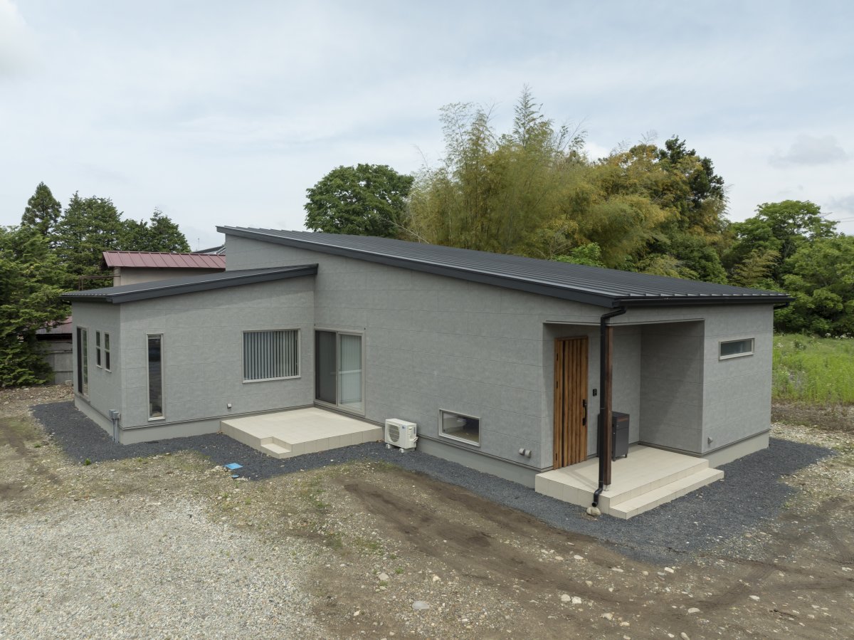 L型平屋のグレイッシュハウス
