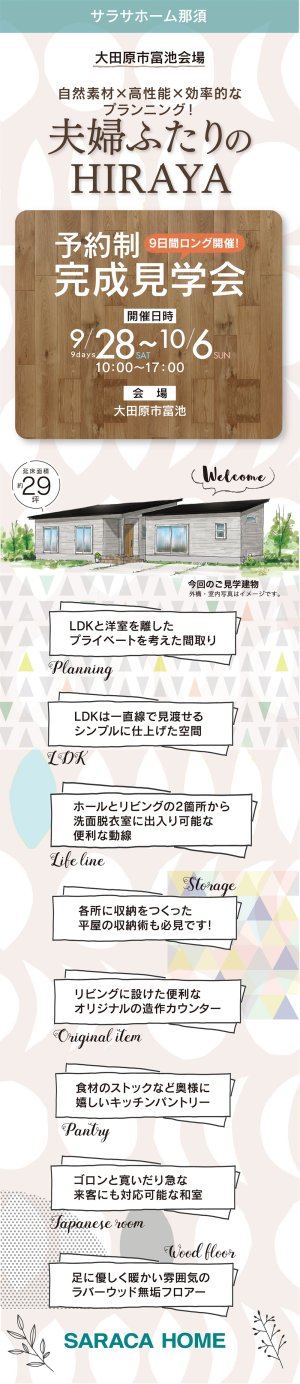 今回、那須塩原市東栄で見学会(内覧会・オープンハウス)を開催。