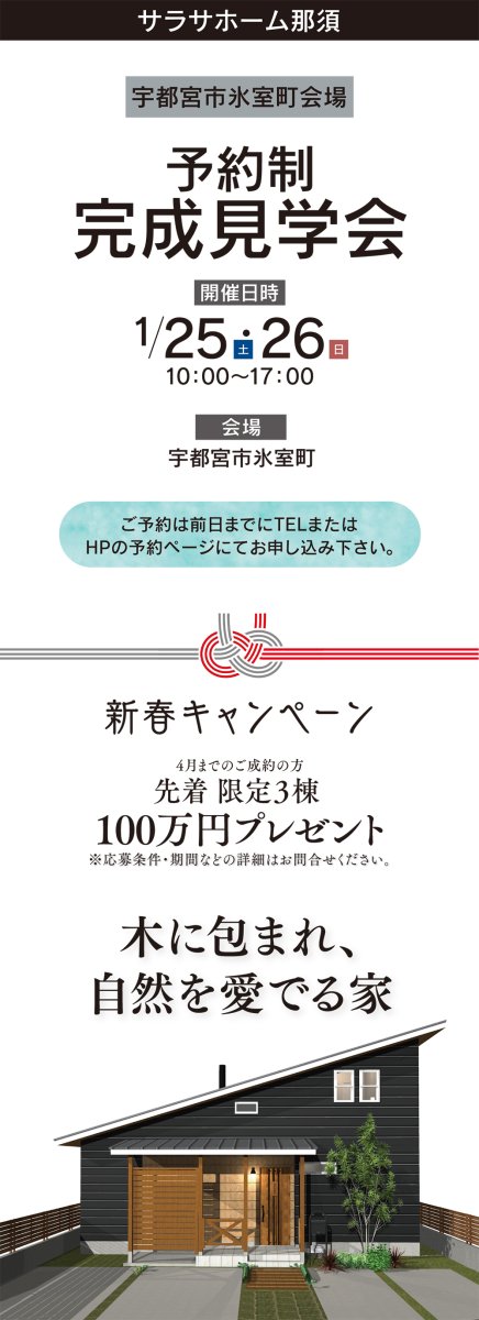今回、那須塩原市太夫塚で見学会(内覧会・オープンハウス)を開催。