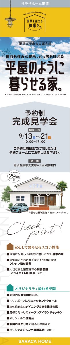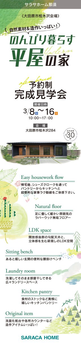 サラサホーム那須は、栃木、大田原、那須烏山で新築の家づくりをしています。
